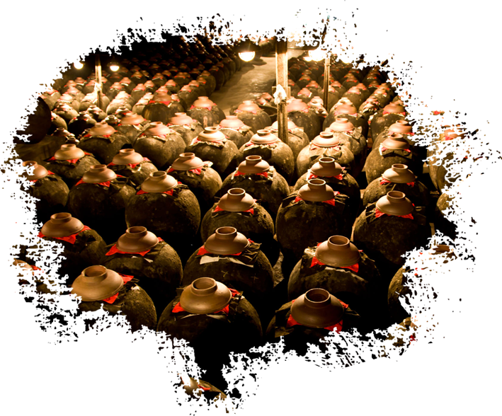 【半地下酒窖麻壇貯藏】: 麻壇具有透氣性并含有多種礦物質,優質陳年老酒經過麻壇儲藏,使得酒體充分老熟,酒體更加豐滿,將麻壇儲藏在半地下酒窖,里面常年恒溫恒濕,最適宜儲酒。